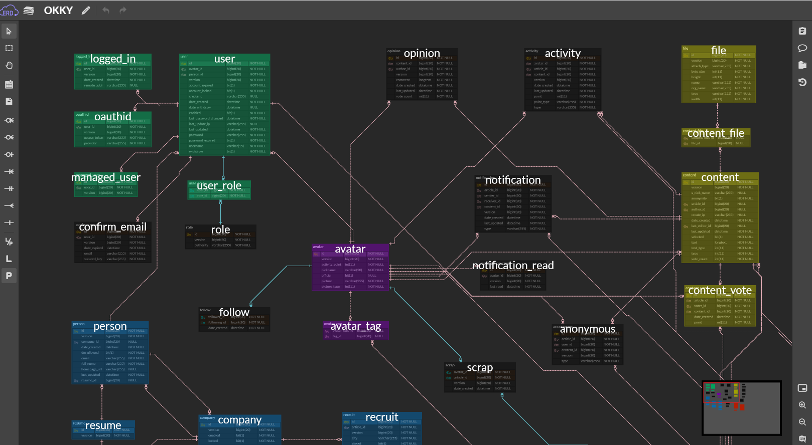무료로 데이터설계를 해볼 수 있고 생성구문까지 제공해주는 웹페이지이다.