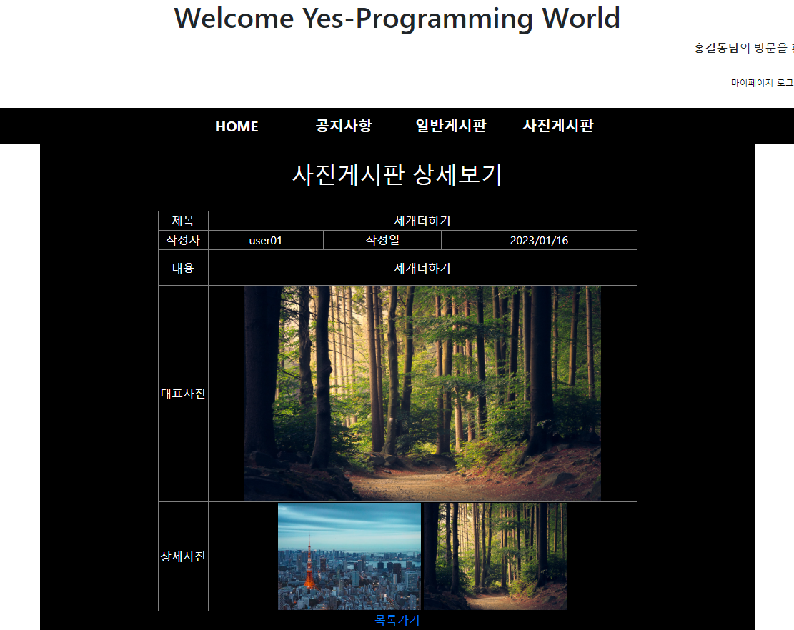 - 사진게시판 목록에서 게시글을 선택했을 때 들어가게 되는 상세페이지구현