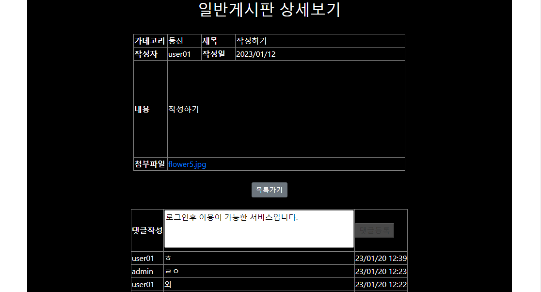 일반 게시글 목록에서 게시글을 클릭하면 조회되는 상세페이지가 있다.