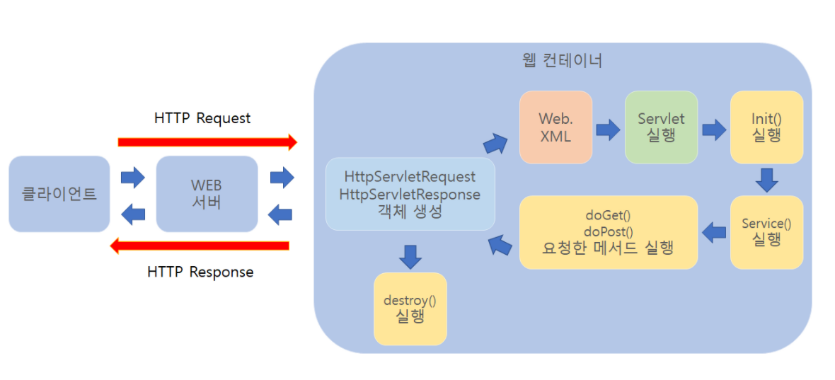 - (첫 번째 요청시) 객체 생성 및 init() 메소드 호출